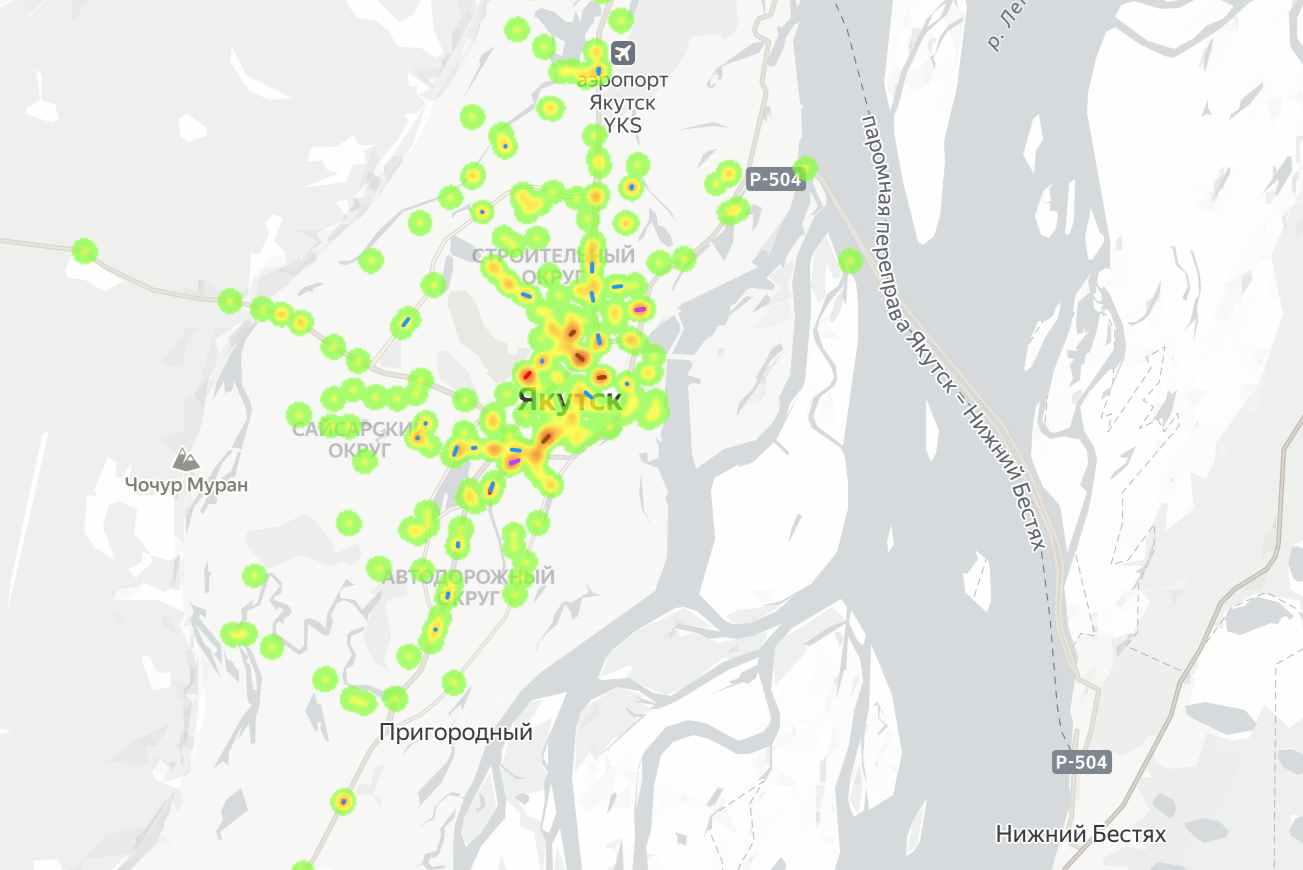 Узнали, где чаще всего происходят ДТП в Якутске: картаОказалось, что на окраинах всё тихо
